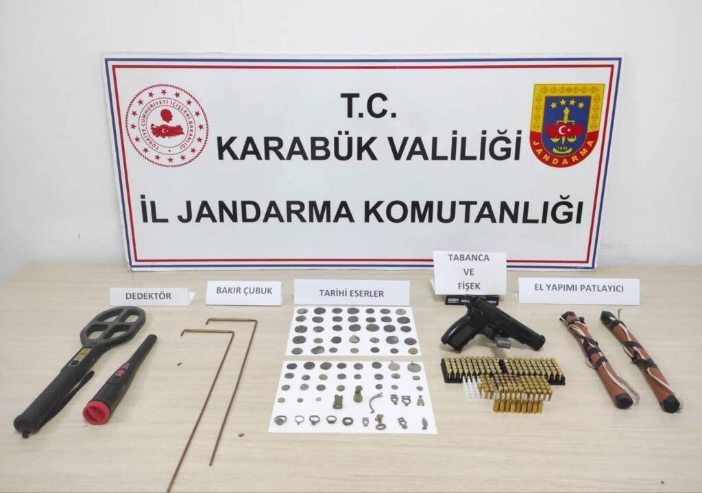 KARABÜK İl Jandarma Komutanlığına bağlı unsurların, Cumhuriyet Başsavcılığı ve Safranbolu Cumhuriyet Savcılığı koordinesinde gerçekleştirdiği icra faaliyetlerinde iki şahsın iş yerinde tarihi eser yakalayarak el koyduğu belirtildi.