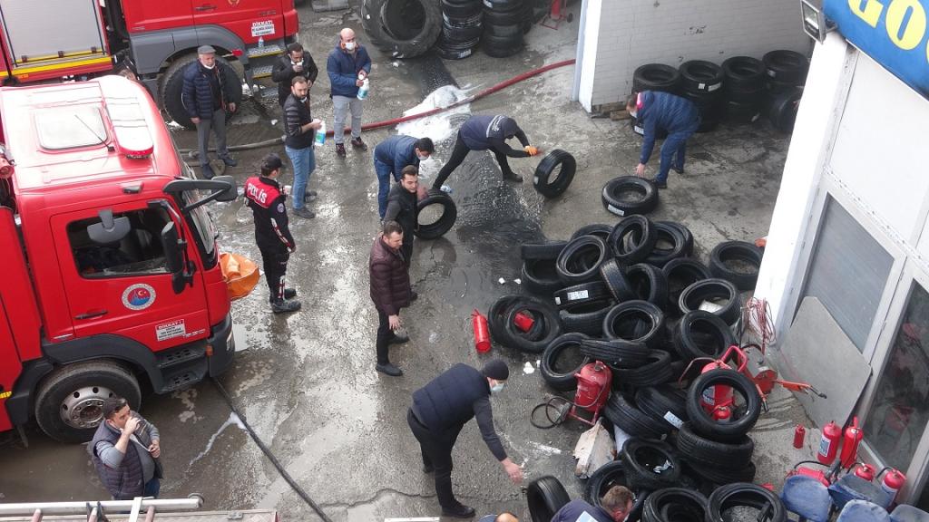Depo içerisindeki kalan lastikleri kurtarmak ve yangının büyümemesi için yoğun çaba sarf eden itfaiye ekiplerine yardım eden çalışanlara ayran takviyesi yapılmasına rağmen, yoğun dumandan etkilenen 7 çalışana ilk müdahale sağlık ekipleri tarafından yapıldı.
